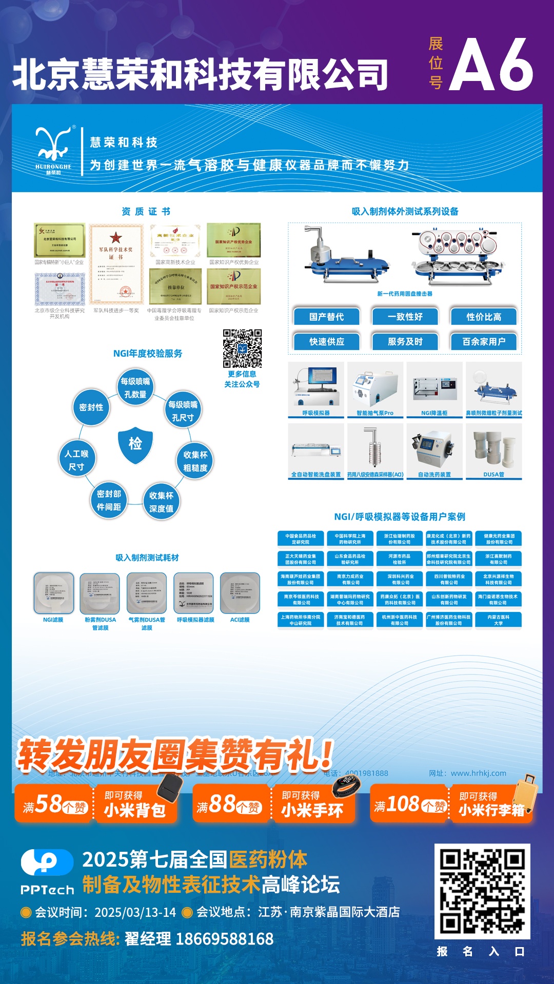 從第七屆全國醫藥粉體制備及物性表征技術高峰論壇組委會獲悉,本屆會議將于2025年3月13-14日在南京舉辦。北京慧榮和科技有限公司作為參展單位邀請您共同出席。
