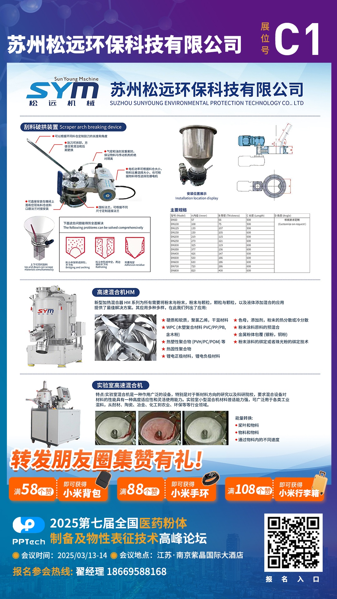 從第七屆全國醫藥粉體制備及物性表征技術高峰論壇組委會獲悉,本屆會議將于2025年3月13-14日在南京舉辦。蘇州松遠環保科技有限公司作為參展單位邀請您共同出席。