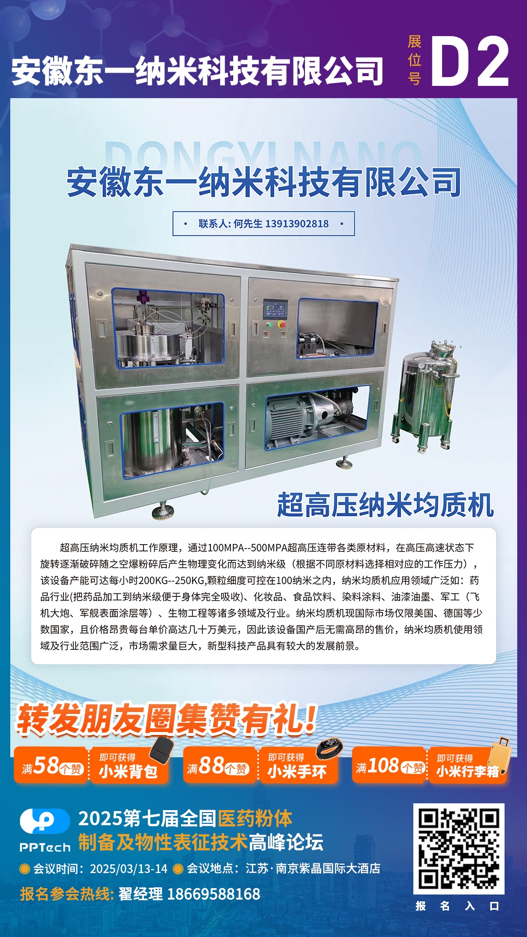 從第七屆全國醫(yī)藥粉體制備及物性表征技術(shù)高峰論壇組委會獲悉,本屆會議將于2025年3月13-14日在南京舉辦。安徽東一納米科技有限公司作為參展單位邀請您共同出席。