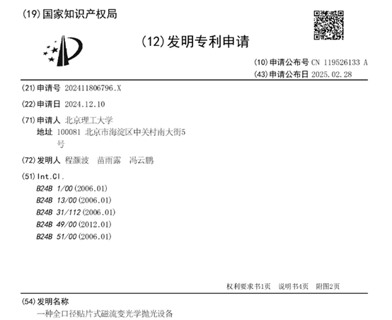 中國(guó)粉體網(wǎng)訊 近日,國(guó)家知識(shí)產(chǎn)權(quán)局信息顯示,北京理工大學(xué)取得一項(xiàng)名為“一種全口徑貼片式磁流變光學(xué)拋光設(shè)備”的專(zhuān)利,可高效拋光光學(xué)玻璃,減少生產(chǎn)成本與周期。