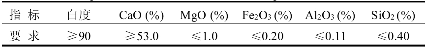 在實(shí)際應(yīng)用中,不僅對原料礦石的CaO含量要求,還要求其白度、MgO、Fe2O3、Al2O3、SiO2含量等理化指標(biāo)。