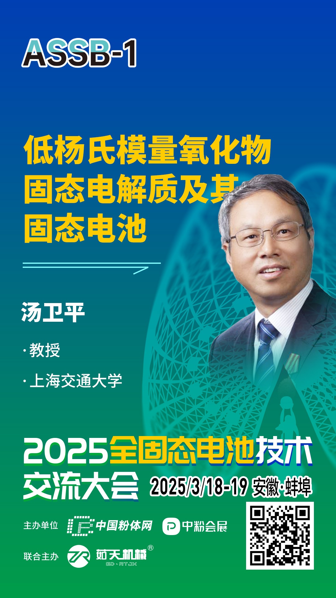 針對固態電池相關的技術、材料、市場及產業等方面的問題,中國粉體網將于2025年3月18-19日在安徽·蚌埠舉辦2025全固態電池技術交流大會暨第一屆干法電極技術研討會。為致力于固態電池技術開發的企業,科研院校,以及新能源汽車、儲能、消費電子等終端企業提供信息交流的平臺,開展產、學、研合作,助推固態電池產業化發展。屆時,上海交通大學湯衛平教授將作題為《低楊氏模量氧化物固態電解質及其固態電池》的報告。