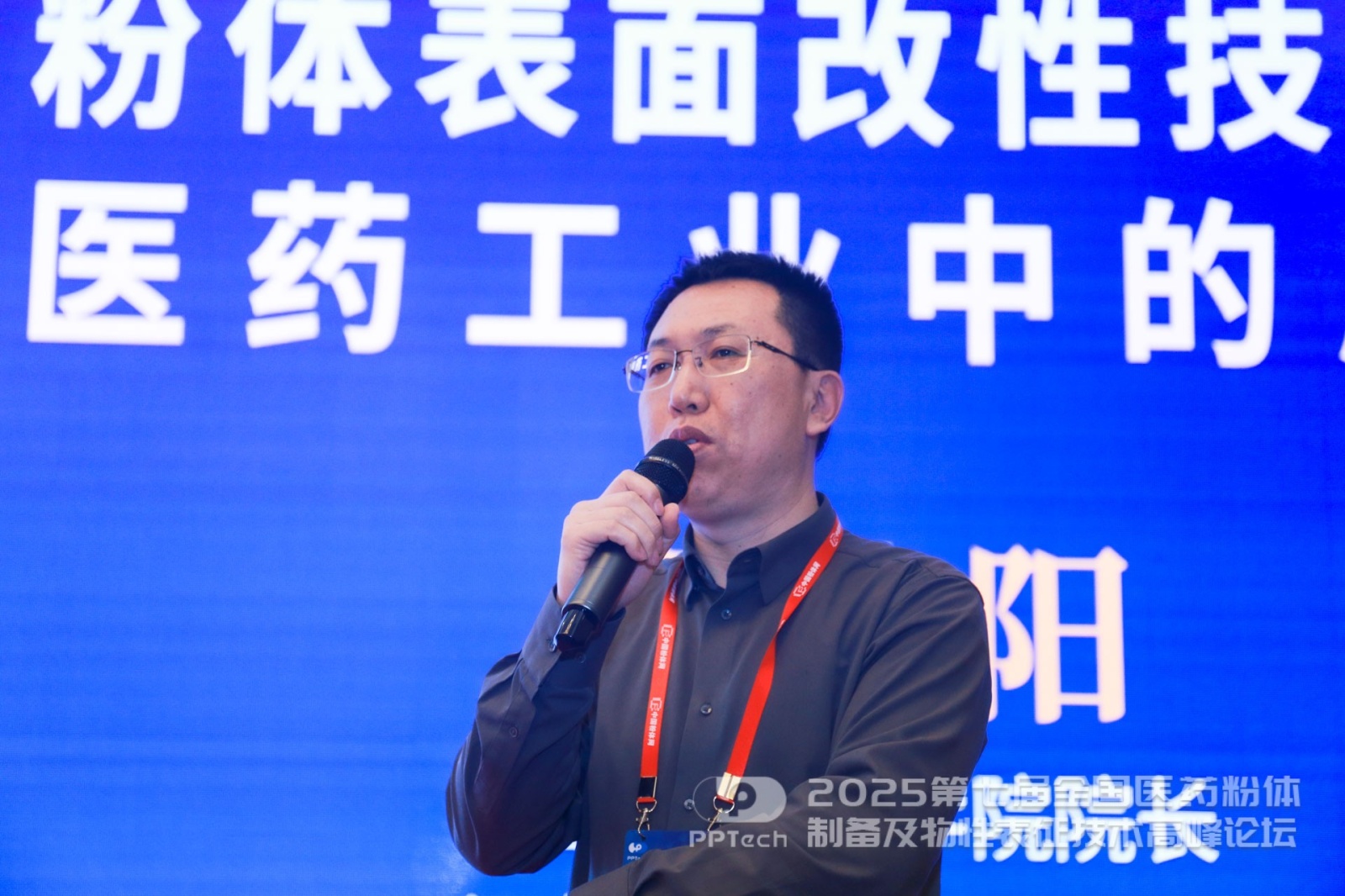 江蘇食品藥品職業(yè)學(xué)院藥學(xué)院院長呂志陽作《粉體表面改性技術(shù)在醫(yī)藥工業(yè)中的應(yīng)用》報告