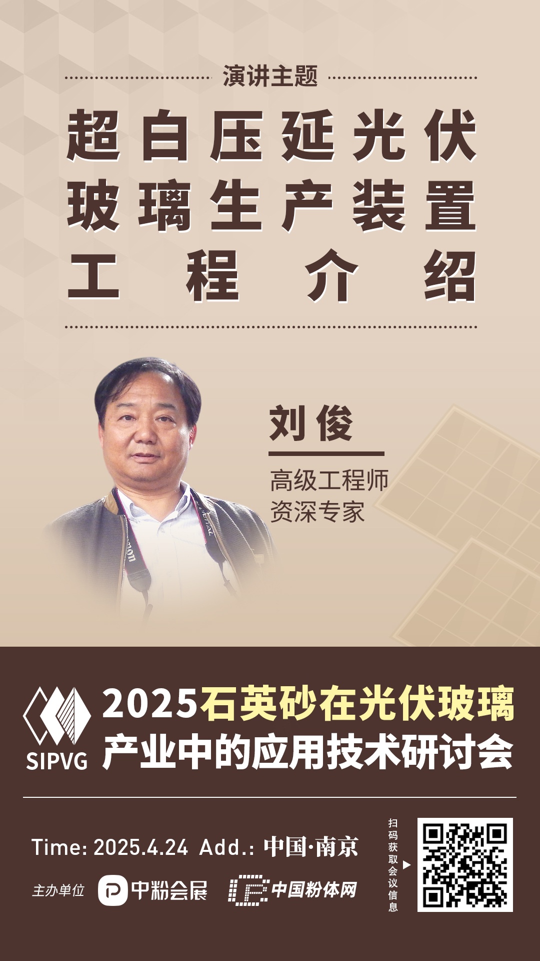2025年4月24日,由中國粉體網(wǎng)、中粉會展主辦的“2025石英砂在光伏玻璃產(chǎn)業(yè)中的應(yīng)用技術(shù)研討會”將在江蘇南京召開,屆時(shí)業(yè)內(nèi)資深專家劉俊高工將做題為《超白壓延光伏玻璃生產(chǎn)裝置工程介紹》的報(bào)告。