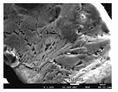 在較高的溫度(1200~1500℃)下,固體石英砂明顯熔化形成固溶體,由于總孔隙率的降低,石英顆粒的體積密度大大增加;在這種溫度下,盡管金屬元素已經被活化,但固溶體石英失去了許多允許晶格雜質與Cl-反應的活性界面。