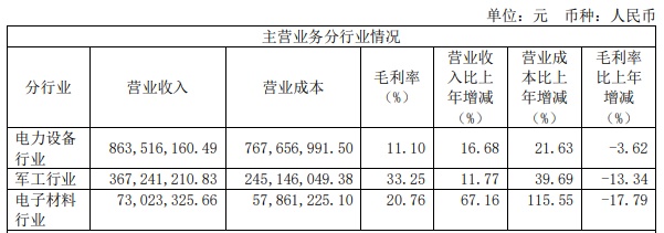 報告期內,公司電子材料業務板塊實現銷售收入7,302.33萬元,同比增長67.16%,是公司三大業務中增速最快的板塊。