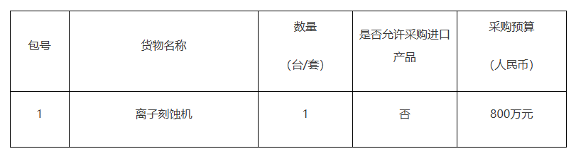 項(xiàng)目名稱:中國(guó)科學(xué)院微電子研究所離子刻蝕機(jī)采購(gòu)項(xiàng)目