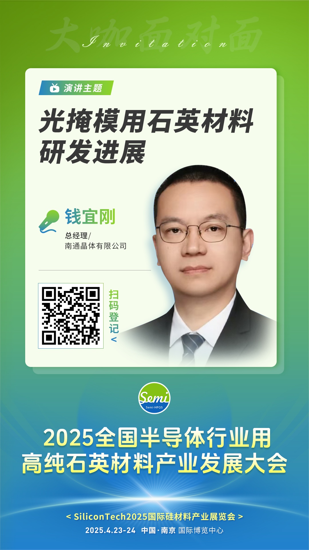 2025年4月23-24日,由中國粉體網(wǎng)、中粉會展主辦的“2025全國半導(dǎo)體行業(yè)用高純石英材料產(chǎn)業(yè)發(fā)展大會”將在江蘇南京召開,屆時來自南通晶體有限公司的錢宜剛總經(jīng)理,將做題為《光掩模用石英材料研發(fā)進展》的報告。