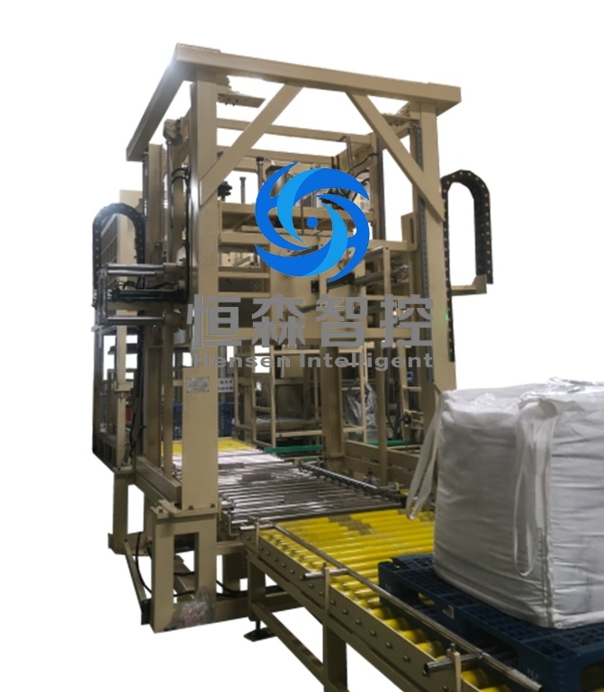 全自動噸袋包裝機是一種全新的噸袋包裝設備是我公司擁有知識產權技術產品。該設備攻克了傳統噸袋包裝機需要人工上袋(掛袋)人工添減原料復稱、冒粉等技術難點,實現了自動上托盤、自動上噸袋(無需人工掛袋)、自動套袋、自動下料稱重。優點是自動上袋、稱量精確、高效環保。