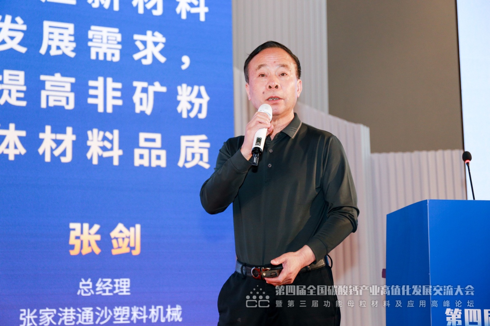 張家港通沙塑料機(jī)械有限公司總經(jīng)理張劍作《適應(yīng)新材料發(fā)展需求,提高非礦粉體材料品質(zhì)》報(bào)告