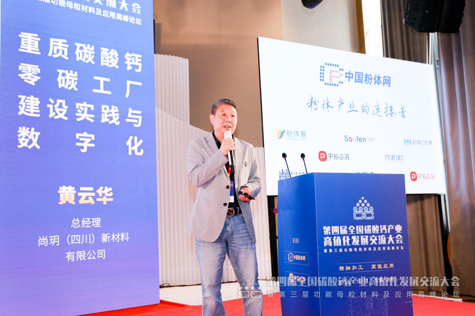 尚玥(四川)新材料有限公司總經理黃云華作《重質碳酸鈣零碳工廠建設實踐與數字化》報告