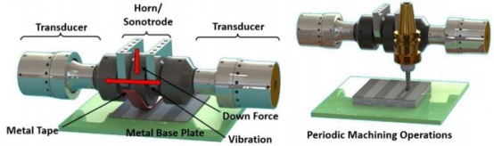 超聲波增材制造技術(shù)(UAM)是一種基于高頻機械振動與摩擦的固相連接工藝,通過金屬箔材的層層固結(jié)實現(xiàn)構(gòu)件成型,無需熔化材料。相較于傳統(tǒng)熔化型增材技術(shù),UAM可有效規(guī)避高溫導(dǎo)致的金屬氧化、相變及殘余應(yīng)力問題,尤其適用于異種金屬連接(如銅/鋁、鋁/鈦)和功能梯度材料構(gòu)建,為輕量化、高性能結(jié)構(gòu)件制造開辟新路徑。