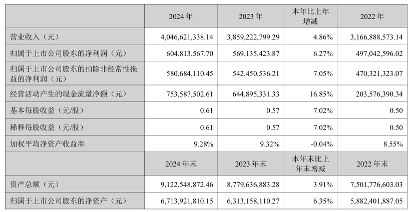 中國粉體網(wǎng)訊 4月21日,國瓷材料公布2024年年度報(bào)告,2024年公司實(shí)現(xiàn)營業(yè)收入40.47億元,同比增長(zhǎng)4.86%;歸屬于上市公司股東的凈利潤6.05億元,同比增長(zhǎng)6.27%;歸屬于上市公司股東的扣除非益的凈利潤經(jīng)常性損5.81億元,同比增長(zhǎng)7.05%。