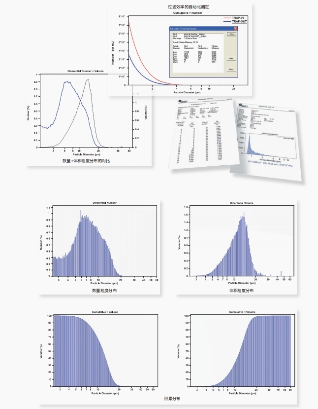 Multisizer 4e 軟件提供了各種格式的粒度與脈沖數據,軟件計算出各種的統計參數,所有的結果都可以以特定設定格式的報告呈現。