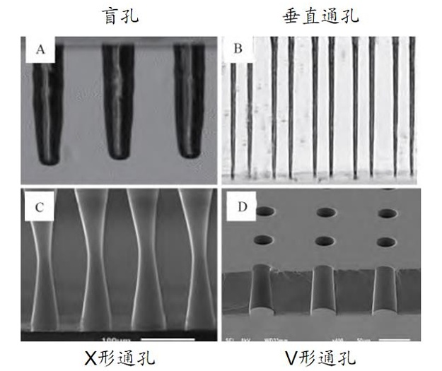 中國粉體網訊 除玻璃通孔成孔技術外,高質量的金屬填充是限制玻璃基板應用的另一大技術難點。其一,因刻蝕工藝的影響,玻璃通孔技術(TGV)與硅通孔技術(TSV)存在差異,TGV孔徑較大且多為通孔,其孔的形狀主要有盲孔、垂直通孔、X型通孔和V型通孔四種類型,這給銅的沉積帶來極大挑戰,容易導致孔出現“堵塞”情況;其二,相較于硅材料,玻璃表面光滑,與常用金屬的粘附性欠佳,這使得玻璃襯底與金屬層之間極易發生分層,進而出現金屬層卷曲甚至脫落的問題。