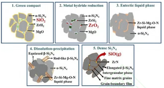 燒結助劑ZrH2在Si3N4陶瓷燒結中的作用機理示意圖