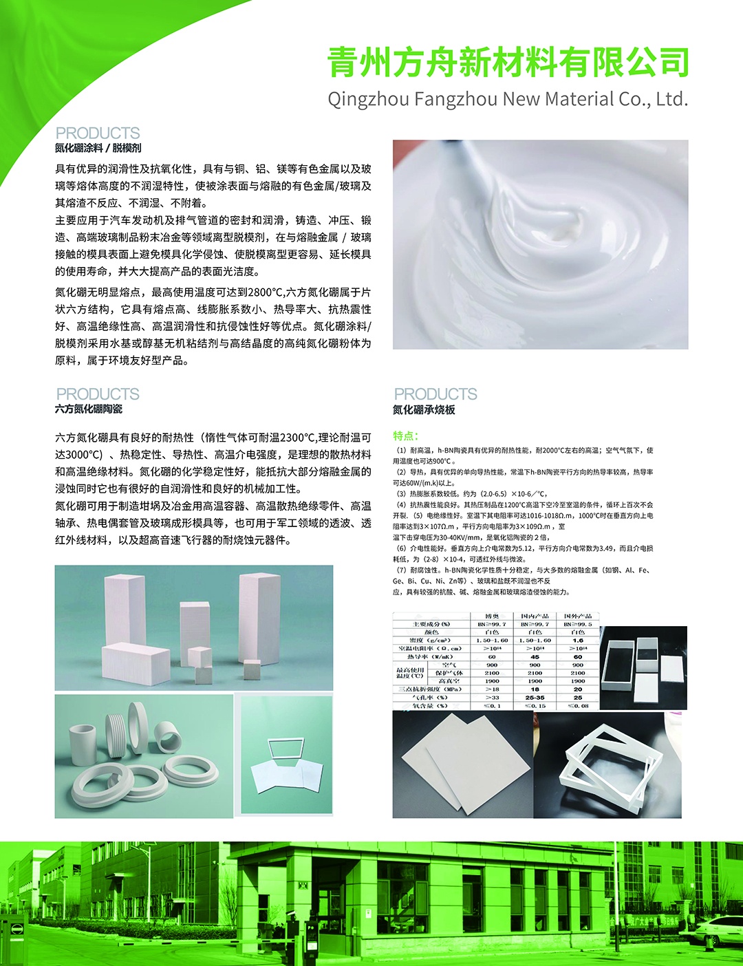 青州方舟新材料有限公司的前身是成立于1998年的淄博市新阜康特種材料有限公司,現(xiàn)坐落于青州市峱(náo)山工業(yè)區(qū),地理位置優(yōu)越、交通便利,產(chǎn)業(yè)基礎(chǔ)雄厚。公司從新阜康成立之始,直至過渡到如今的方舟新材,作為一家無機(jī)化工材料領(lǐng)域的企業(yè),多年來一直專注氮化物陶瓷的研發(fā)、生產(chǎn)、銷售,主要產(chǎn)品包括:六方氮化硼粉體及其制品、氮化鋁粉體、氮化硅粉體、氮化物復(fù)合陶瓷制品等。目前,方舟在新阜康原有的生產(chǎn)技術(shù)及設(shè)備的基礎(chǔ)上,引進(jìn)了自動(dòng)化的生產(chǎn)設(shè)備,生產(chǎn)能力大大增加,產(chǎn)品質(zhì)量穩(wěn)定性得到了提升,成為全國六方氮化硼粉體產(chǎn)銷量領(lǐng)先的生產(chǎn)企業(yè)。其產(chǎn)品經(jīng)過國家建筑材料測試中心檢測,各項(xiàng)技術(shù)指標(biāo)處于國內(nèi)同行業(yè)領(lǐng)先地位,并出口到臺(tái)灣、日本、韓國、歐美等地區(qū)和國家,公司已通過了ISO9001:2000國際質(zhì)量體系認(rèn)證,并擁有自營進(jìn)出口權(quán)。