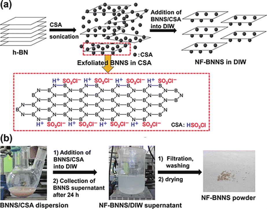 氯磺酸輔助h-BN剝離為NF-BNNS的示意圖