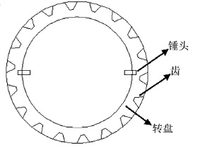 物料首先通過(guò)振動(dòng)給料器進(jìn)入沖擊磨的粉碎腔內(nèi);在粉碎腔中,物料在高速旋轉(zhuǎn)的轉(zhuǎn)子的加速作用下撞擊到襯板的齒上,或在轉(zhuǎn)盤的錘頭與襯板的齒面之間發(fā)生沖擊剪切而粉碎;隨后,粉碎的物料隨著氣流進(jìn)入分級(jí)腔,分級(jí)腔內(nèi)安裝有一個(gè)垂直放置的分級(jí)輪轉(zhuǎn)子,通過(guò)分級(jí)輪轉(zhuǎn)子的旋轉(zhuǎn),產(chǎn)生一個(gè)旋轉(zhuǎn)氣流場(chǎng),顆粒同時(shí)受到旋轉(zhuǎn)的離心力和氣流曳力兩種作用力,粗顆粒所受離心力大于氣流曳力,被拋向筒壁,沿筒壁落回粉碎腔繼續(xù)進(jìn)行粉碎,符合粒徑要求的顆粒則隨氣流被吸入轉(zhuǎn)子中心。分級(jí)部分的存在可以避免過(guò)度粉碎。絕大部分產(chǎn)物在旋風(fēng)分離器的出口處收集,而非常小的顆粒則可能被筒式過(guò)濾器收集,從而避免粉塵污染。