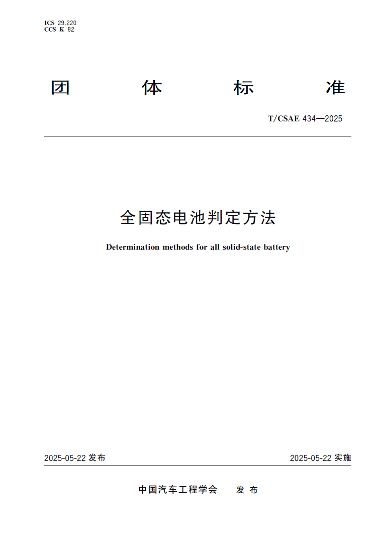 中國粉體網訊 2025年5月22日,中國汽車工程學會正式發布《全固態電池判定方法》(T/CSAE 434-2025),該標準首次明確了“全固態電池”定義,要求離子傳遞完全通過固體電解質實現,與混合固液電解質電池形成嚴格技術分界。