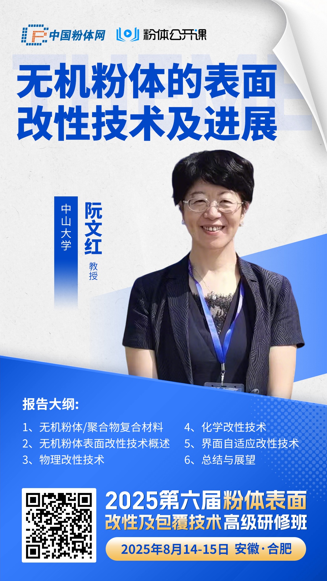 中國粉體網訊 為推動粉體表面改性及包覆技術發展,促進產學研交流合作,中國粉體網粉體公開課將于 2025 年 8 月 14 - 15 日舉辦 “2025 第六屆粉體表面改性及包覆技術高級研修班”。本次研修班特邀中山大學阮文紅教授主講《無機粉體的表面改性技術及進展》課程,為參會人員帶來了無機粉體表面改性領域的最新研究成果。