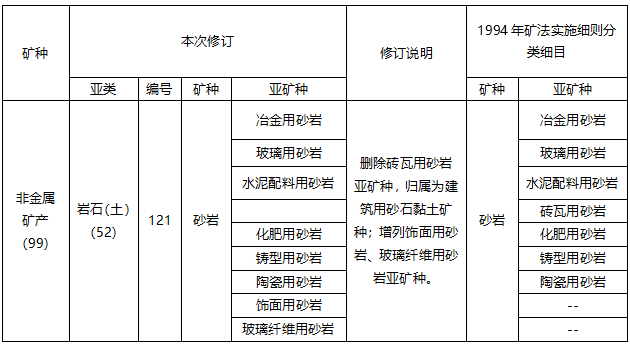 同時,增列飾面用砂巖、飾面用閃長巖、飾面用玄武巖、飾面用凝灰巖、飾面用石英巖分別為相應礦種的亞礦種。