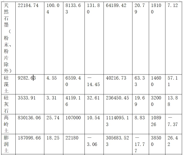 2024年我國高嶺土出口量1114095.13噸(2023年出口量1023679.75噸),金額10.89億元;2025年1~4月出口量353251.00噸(2024年1~4月出口量350285.93噸),金額3.40億元。