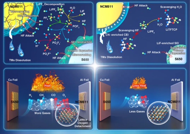 LiTFTCP添加劑在穩定電極/電解液界面和提高NCM811/S650全電池的熱安全性方面的作用機制