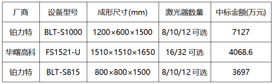 鉑力特BLT-S815:800×800×1500mm的中等幅面設(shè)備,擅長(zhǎng)高復(fù)雜度航空零部件的批量化生產(chǎn),中標(biāo)價(jià)3697萬(wàn)元。