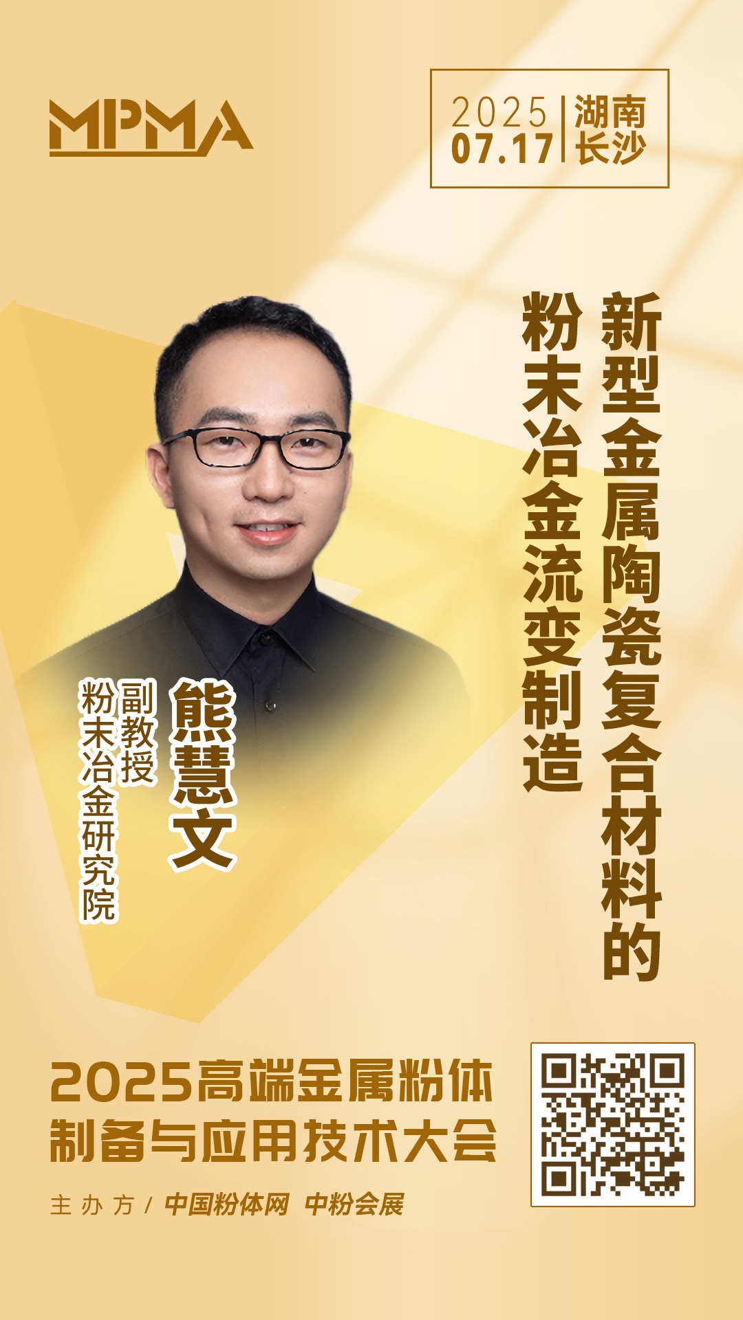 2025年7月17日,中國粉體網(wǎng)將在湖南·長沙舉辦“2025高端金屬粉體制備與應(yīng)用技術(shù)大會暨2025通信電子、3D打印、粉末冶金市場金屬粉國產(chǎn)化交流會”。屆時(shí),我們邀請到中南大學(xué)粉末冶金研究院熊慧文副教授出席本次大會并作題為《新型金屬陶瓷復(fù)合材料的粉末冶金流變制造》的報(bào)告,熊慧文副教授將為您介紹粉末冶金流變制造技術(shù)在金屬陶瓷復(fù)合材料中的應(yīng)用。