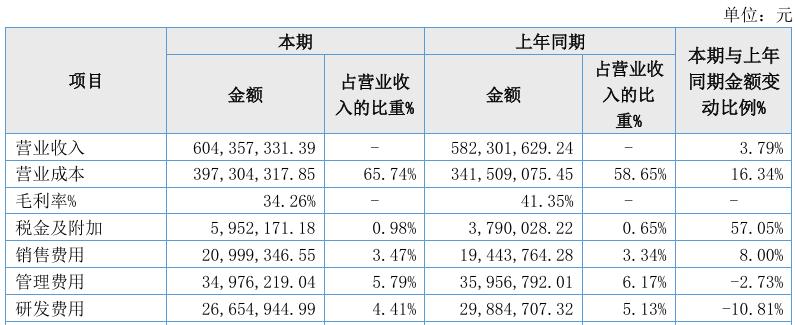 2、營收6億元,同期增長3.79%