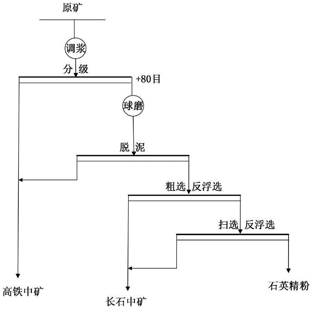 以長石原礦為處理對象,原礦經磨礦、脫泥后,礦漿pH值調至10.60-11.00,將納米氣泡發生器處理后帶有微氣泡的清水輸送至補加完浮選藥劑的礦漿內,充氣進行長石和石英浮選分離,泡沫為石英產品,殘留槽底的為長石產品。