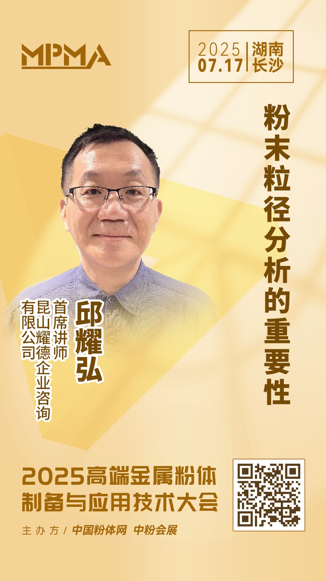 2025年7月17日,中國粉體網將在湖南·長沙舉辦“2025高端金屬粉體制備與應用技術大會暨2025通信電子、3D打印、粉末冶金市場金屬粉國產化交流會”。屆時,我們邀請到昆山耀德企業咨詢有限公司首席講師邱耀弘出席本次大會并作題為《粉末粒徑分析的重要性》的報告,邱耀弘講師以金屬注射成形(MIM)為例,系統闡釋激光粒度分析數據的深層價值。