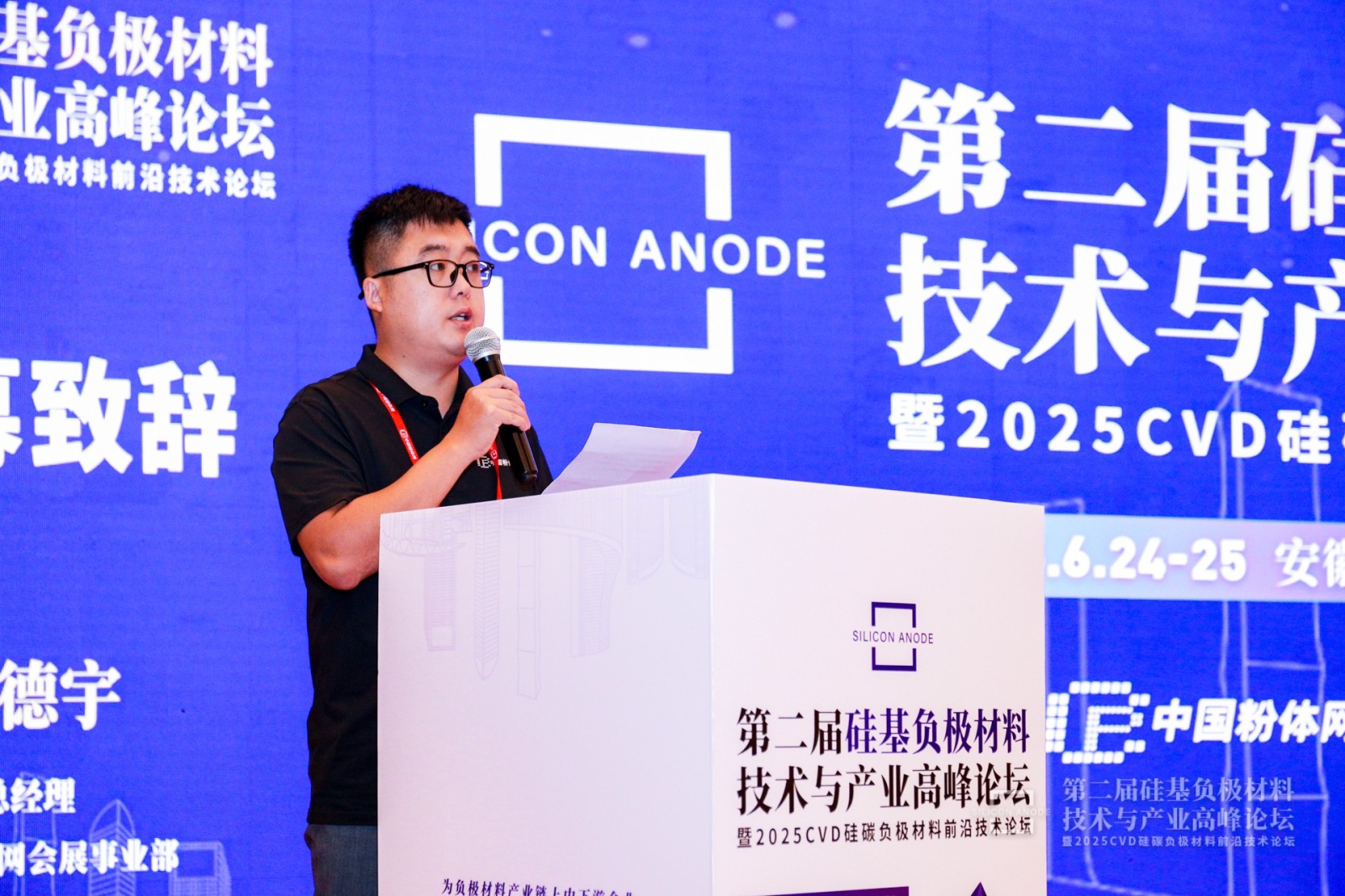 中國(guó)粉體網(wǎng)訊 隨著新能源汽車、儲(chǔ)能及消費(fèi)電子領(lǐng)域?qū)Ω吣芰棵芏蠕囯姵匦枨蟮募ぴ觯蜾囯姵丶夹g(shù)的發(fā)展已接近技術(shù)瓶頸,因此高性能負(fù)極材料成為目前鋰離子電池的研究熱點(diǎn)之一。6月24-25日,由中國(guó)粉體網(wǎng)主辦的第二屆硅基負(fù)極材料技術(shù)與產(chǎn)業(yè)高峰論壇暨2025CVD硅碳負(fù)極材料前沿技術(shù)論壇在安徽合肥圓滿舉辦。本屆大會(huì)為負(fù)極材料產(chǎn)業(yè)鏈上中下游企業(yè)搭建了深度交流的平臺(tái),共同開展產(chǎn)、學(xué)、研合作,助推負(fù)極材料行業(yè)持續(xù)健康發(fā)展。