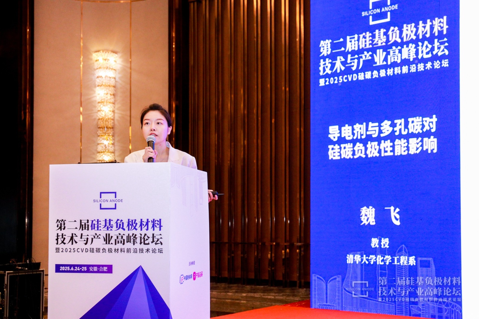 清華大學(xué)魏飛教授(何姿穎博士代)作《導(dǎo)電劑與多孔碳對(duì)硅碳負(fù)極性能影響》報(bào)告
