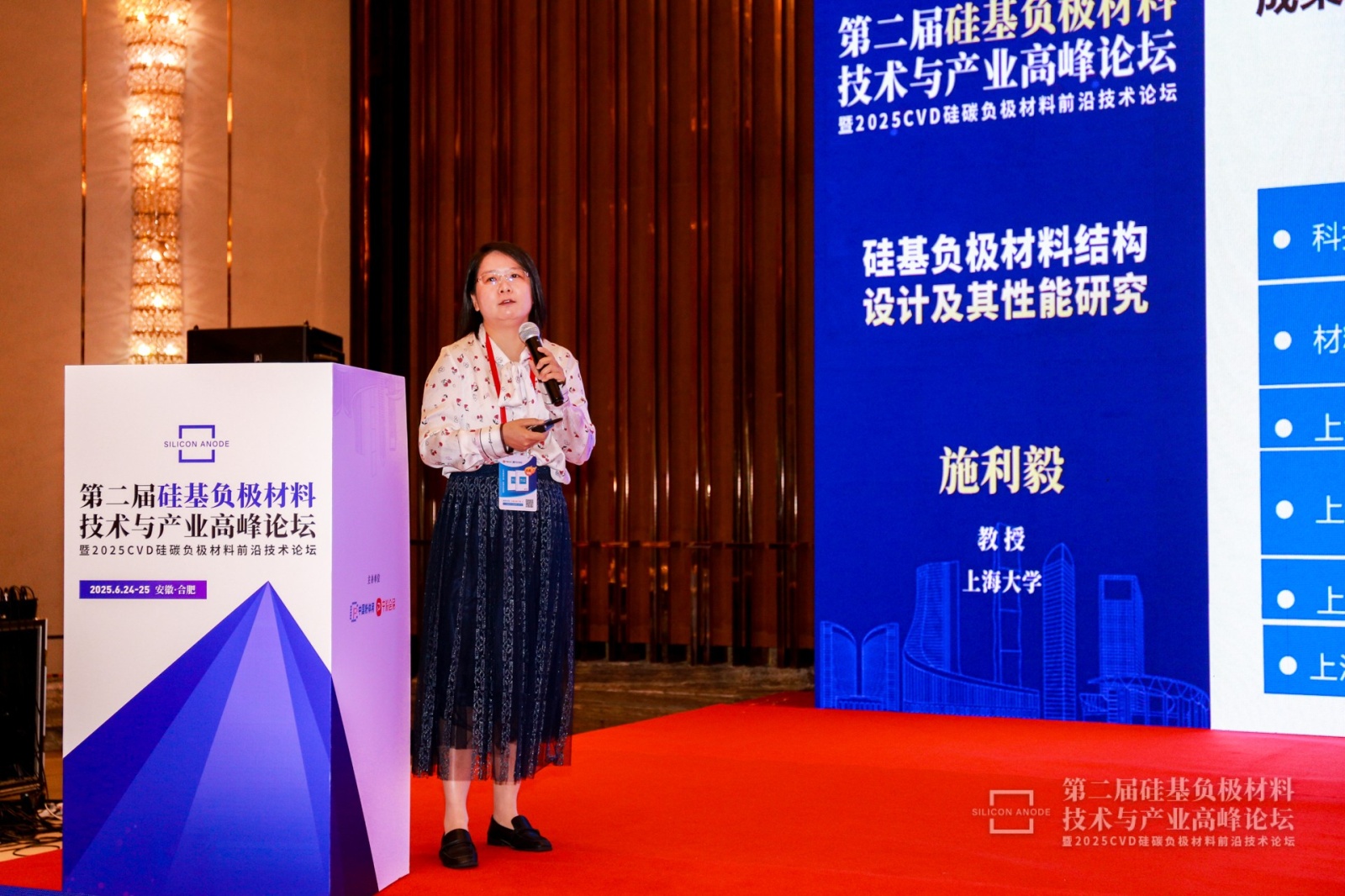 上海大學(xué)施利毅教授(呂盈盈副教授代)作《硅基負(fù)極材料結(jié)構(gòu)設(shè)計(jì)及其性能研究進(jìn)展》報(bào)告