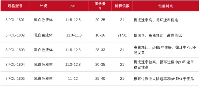 公司本次推出多款拋光液,具備不同性能特點。