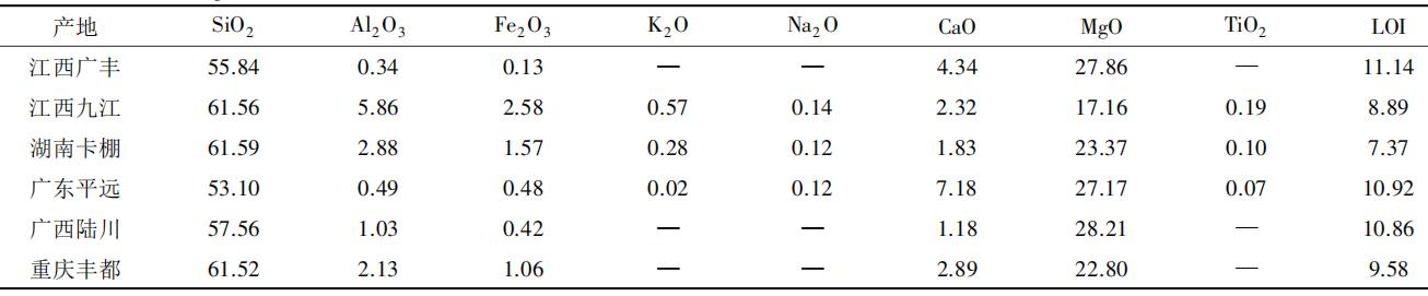 我國(guó)部分地區(qū)黑滑石的化學(xué)成分(質(zhì)量分?jǐn)?shù)/%)
