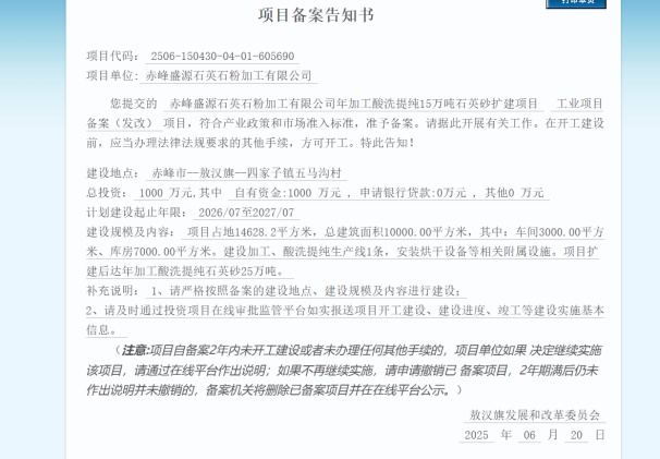 65萬噸!內(nèi)蒙古兩家企業(yè)石英砂項目備案