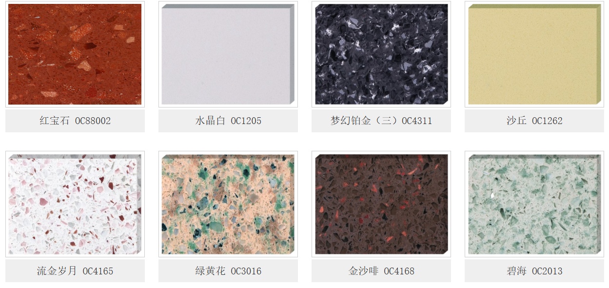 歐潮以質量和創新作為公司立足于發展之本。在消化吸收國外同類產品先進技術的基礎上,研創歐潮自己獨特的工藝配方與生產技術。歐潮以93%以上石英石為主體,在真空條件下將高純石英石晶體及輔料通過異構聚合技術制造而成,具有密度大、硬度高、耐酸堿、抗老化等特點;其紋理自然高貴、色彩明亮舒適,質量可達國外同類產品的先進水平,產品已出口歐美、澳大利亞及亞洲廣大地區,是星級酒店,高檔住宅裝修理想的新一代環保產品。