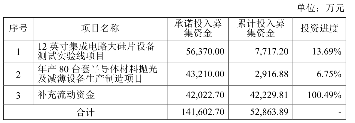 另外,公司全資子公司晶鴻精密依托多年高端精密加工設(shè)備投入和高級技術(shù)人才儲備建設(shè),已發(fā)展為擁有精密加工、特種焊接、組裝測試、半導(dǎo)體級表面處理等核心制造能力的半導(dǎo)體核心零部件供應(yīng)商,通過打造核心零部件制造基地,構(gòu)建了涵蓋腔體與結(jié)構(gòu)件(傳輸腔體、反應(yīng)腔體、真空腔體等)、功能組件(氣體分配盤、精密傳動裝置、磁流體密封裝置、超導(dǎo)磁體等)、耗材與密封件(圓環(huán)類組件、腔體遮蔽件、半導(dǎo)體閥門管件等)三大核心產(chǎn)品矩陣,不斷提升半導(dǎo)體產(chǎn)業(yè)鏈關(guān)鍵零部件的配套服務(wù)能力,已能夠逐步滿足公司拋光減薄設(shè)備核心零部件需求,為進(jìn)一步提高募集資金的使用效率、避免重復(fù)建設(shè),經(jīng)審慎決定,公司決定不再投建該項(xiàng)目后續(xù)的零部件加工設(shè)備投入。