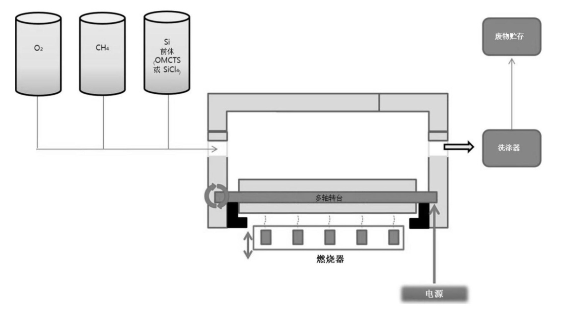 一種多噴燈CVD合成大尺寸石英玻璃的方法
