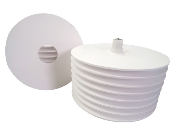 碟式陶瓷膜具有飛碟式的外部形狀,內部含有螺旋形的滲透通道,具有分離功能的膜層在碟式陶瓷膜的外表面。通過旋轉獲得膜間壓力,滲透液通過膜表面進入到碟式陶瓷膜內部的滲透通道,然后通過中空的中心軸流出體系。