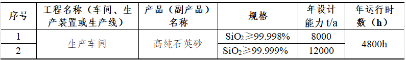 項目的產品質量標準執行《電子產品用高純石英砂》SJ/T 3228.1中的二級和三級標準。