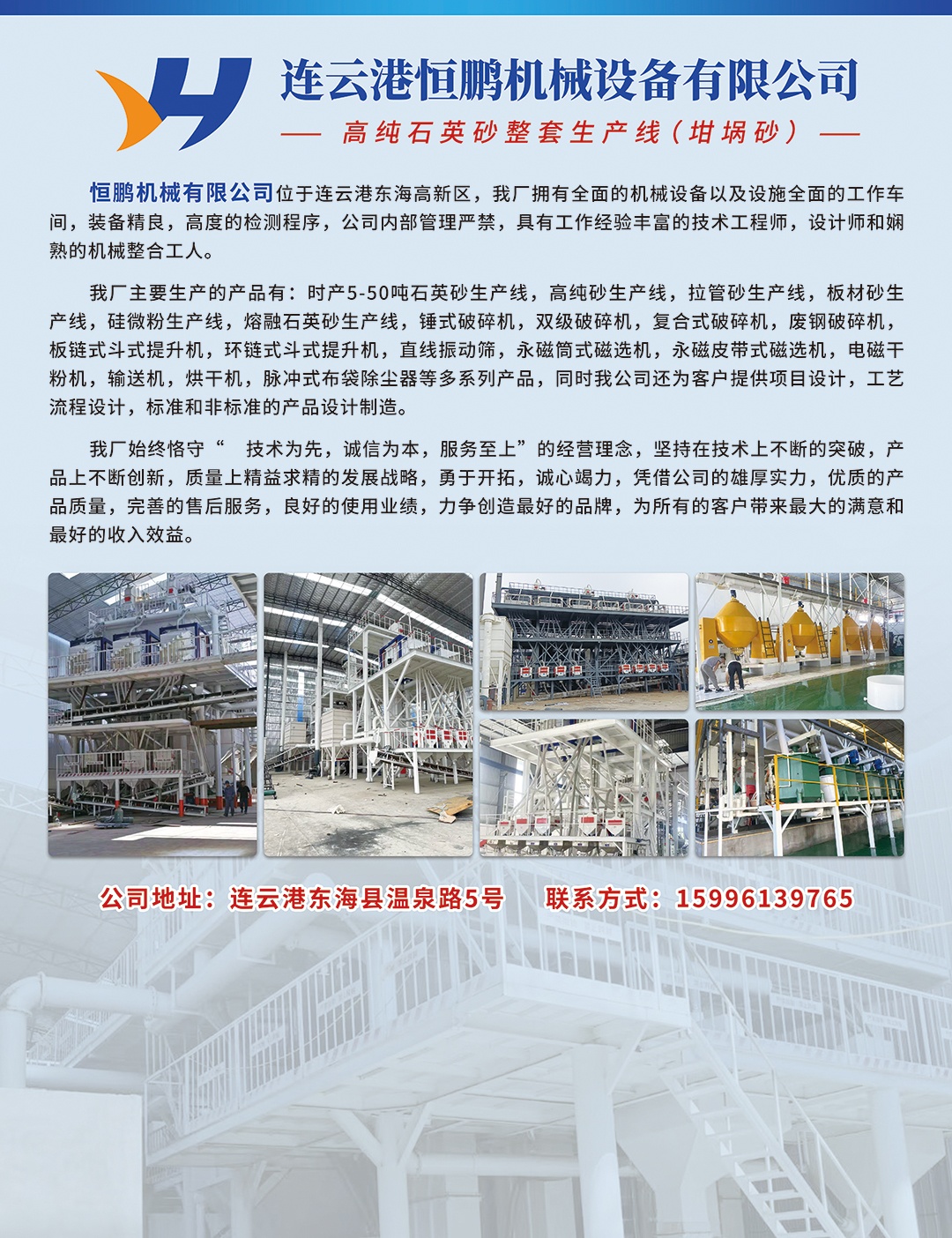 由中國粉體網主辦的“2025第六屆全國板材用石英砂供需洽談會”將于8月8日在山東棗莊舉辦,連云港恒鵬機械設備有限公司邀您一同參加。