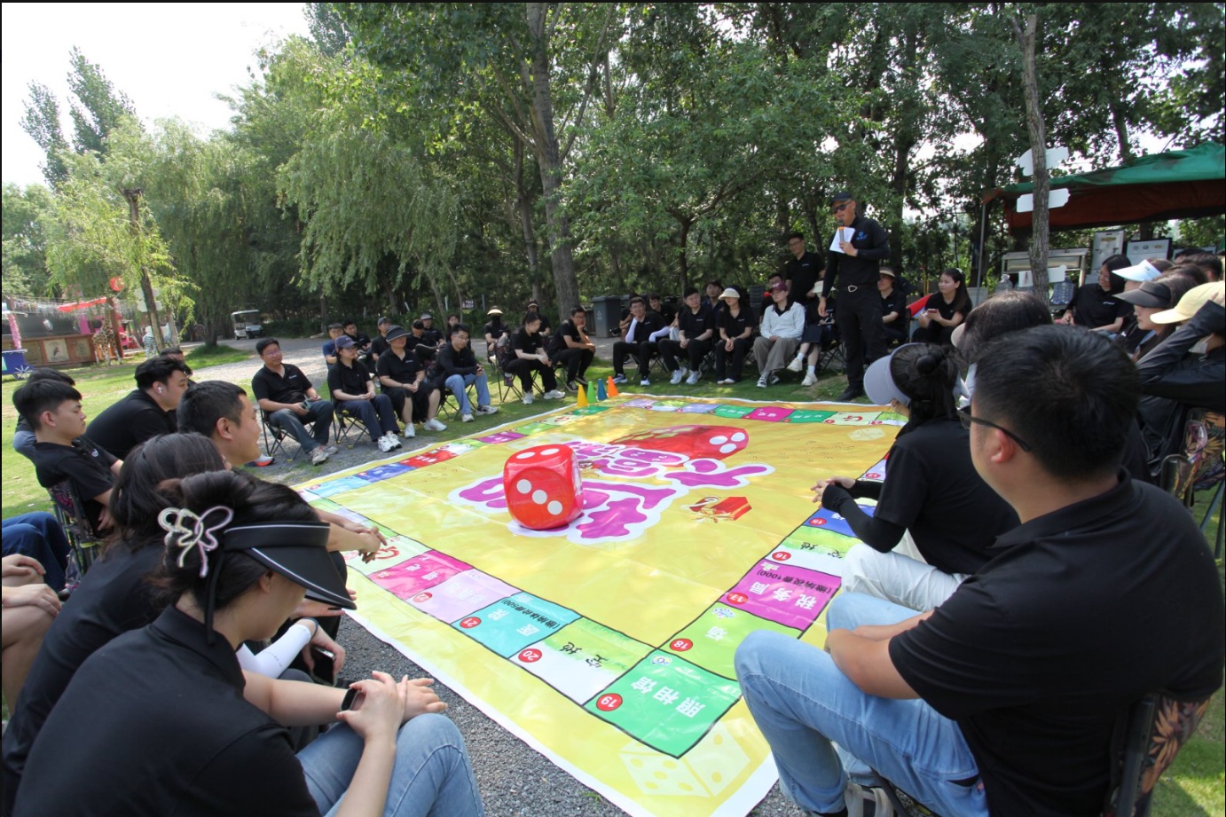 稍事休整后,趣味十足的“超級大富翁”游戲正式拉開帷幕,各小組手持代表啟動資金的籌碼,興奮地輪流投擲巨型骰子,隨著點數(shù)行進(jìn)在布滿"神秘事件"與"財富機(jī)遇"的巨型棋盤上。有人幸運觸發(fā)"雙倍收益"歡呼雀躍,有人遭遇"繳納罰款"事件佯裝苦惱,大家在模擬商業(yè)談判中斗智斗勇。這場將策略博弈、妙答比拼與團(tuán)隊協(xié)作巧妙融合的活動,讓大家在歡聲笑語中釋放了壓力,也拉近了彼此的距離。