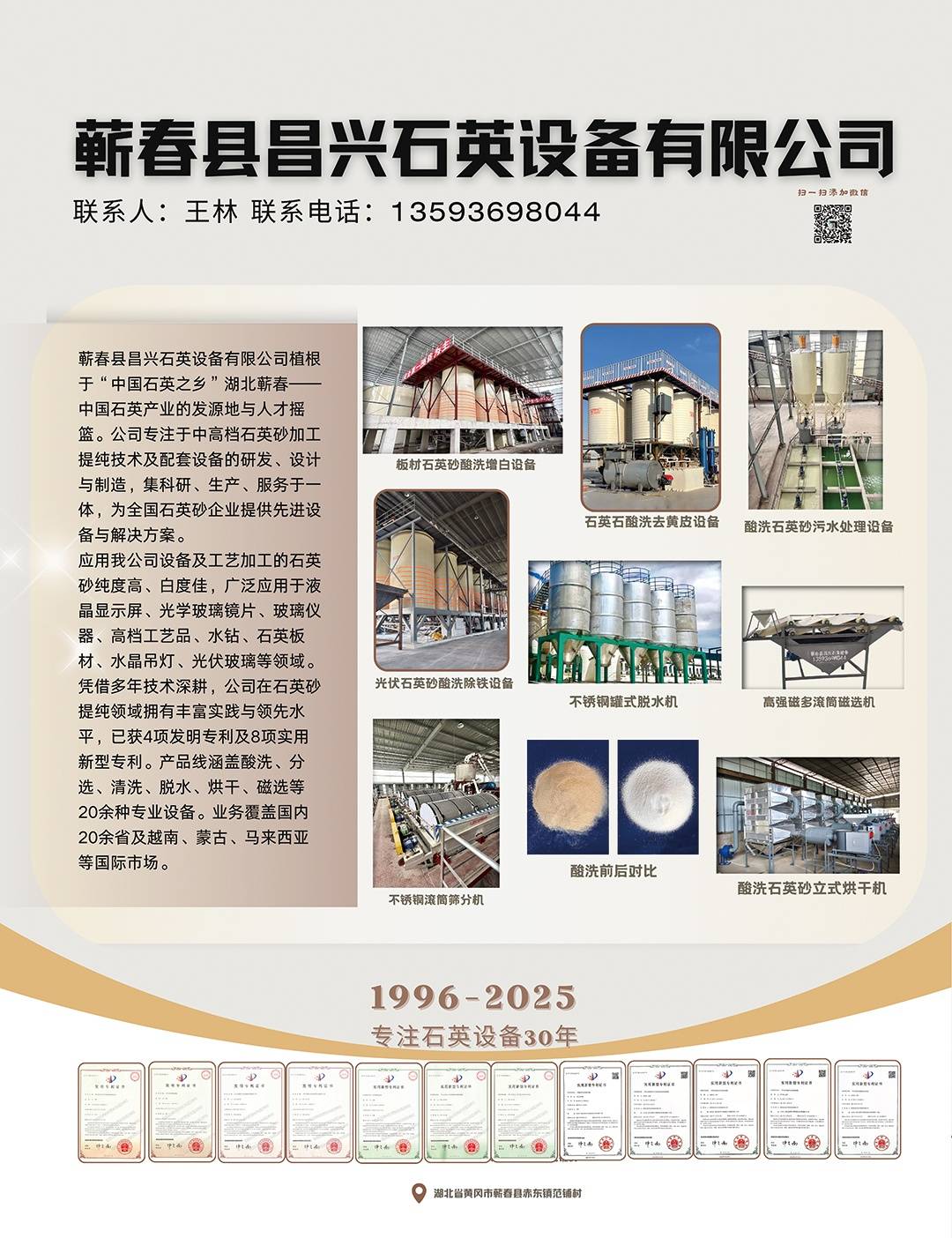 蘄春縣昌興石英設備有限公司是一家為中高檔石英砂加工、提純,生產配套設備的專業公司,集科研設計、開發生產服務為一體。