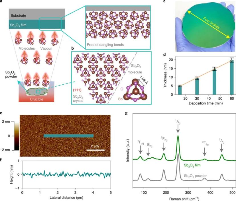 熱蒸鍍實現晶圓級范德華介電薄膜可控制備的示意圖。蒸鍍工藝高度可控,且與半導體制備工藝兼容,易于實現規模化制備。