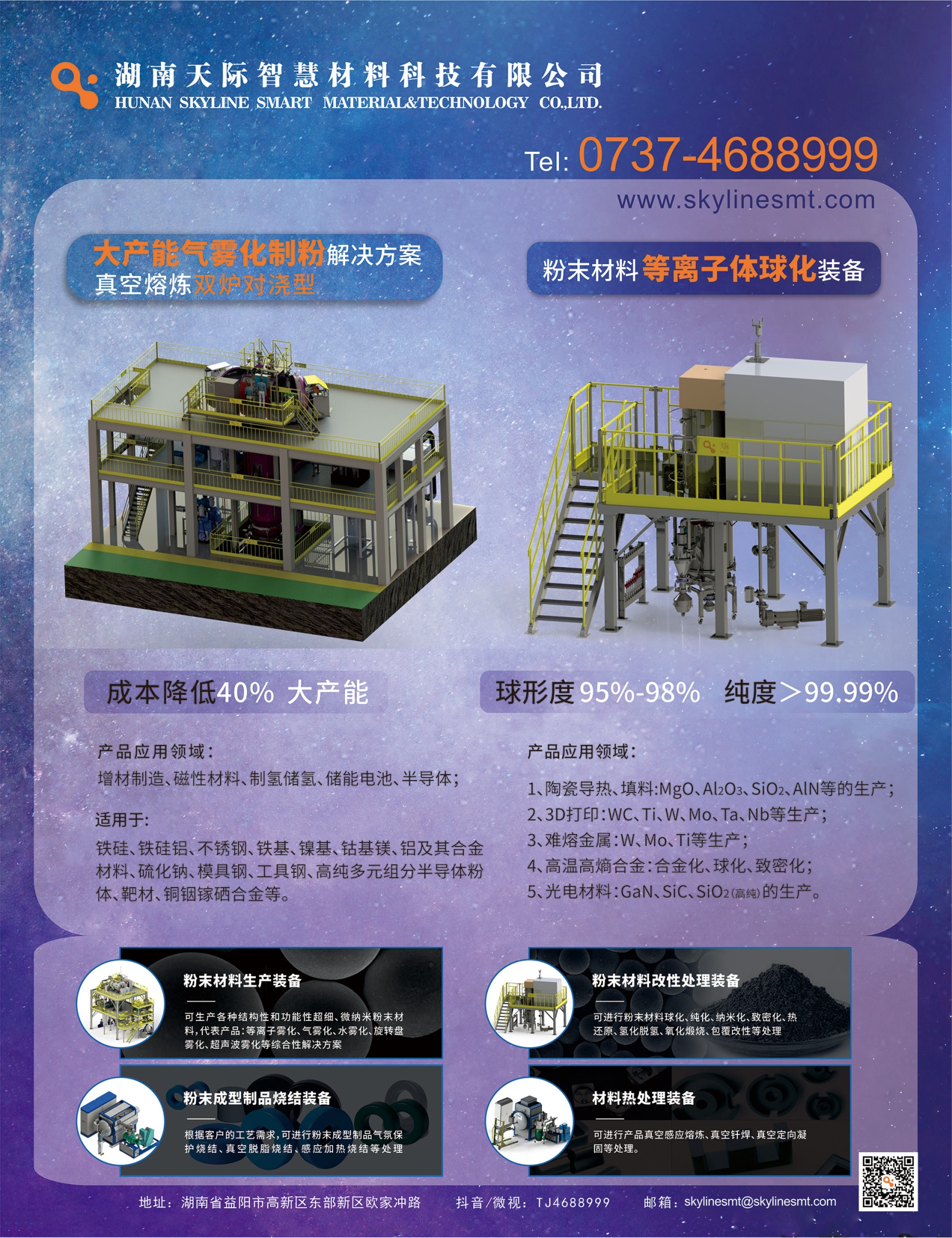 湖南天際智慧材料科技有限公司位于湖南省益陽國家高新區(qū),特別專注于各種微納米粉末材料的制備技術(shù)研發(fā)和生產(chǎn)裝備的制造。產(chǎn)品產(chǎn)業(yè)鏈包括高性能粉末材料的制備技術(shù)和裝備、粉末材料的改性技術(shù)和裝備、粉末成型制品的燒結(jié)和熱處理技術(shù)和裝備等。