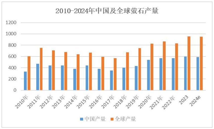 雖然我國螢石礦儲量豐富,但富礦少,貧礦、伴生礦及難選礦多,且螢石礦物嵌布粒度細,與脈石礦物共生狀態復雜。與此同時,我國螢石資源開采過度,其儲量約占全球的四分之一,而產量常年超過全球的60%。單一螢石礦山的儲采比僅10余年,資源保障能力嚴重不足,資源安全堪憂。